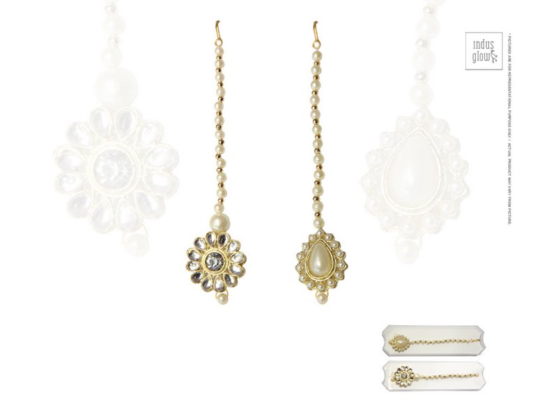(Traditional Maang Tika with artificial stones and pearls)