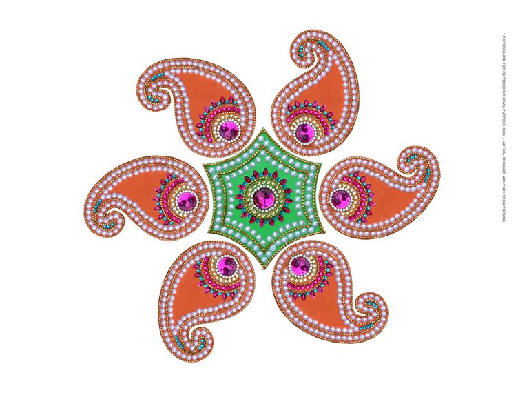 D-I-Y Rangoli Kit (Portable/Stones Finish) Z- 650/- 7 Cut-outs (Both sides usable) / Painting colors (Acrylic) / Paint Brush / Embellishments (sufficient for 14 sides)