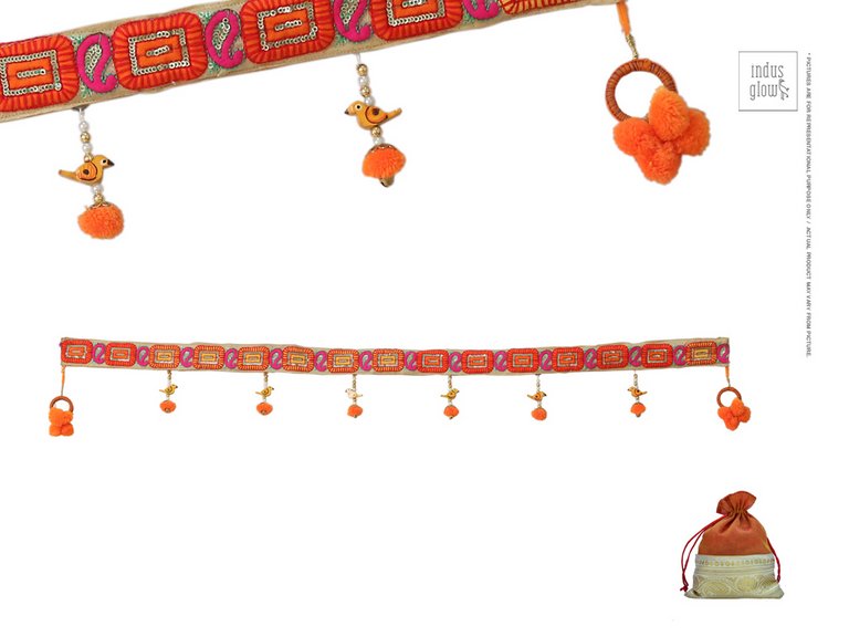 (Traditional Gujrati Bandanwar with colourful thread work and wooden birds / 3ft. long )